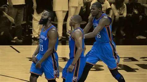 这也意味着:曾经一起进2012年总决赛的雷霆三大天才——杜兰特、威斯布鲁克、哈登——就此分道扬镳。